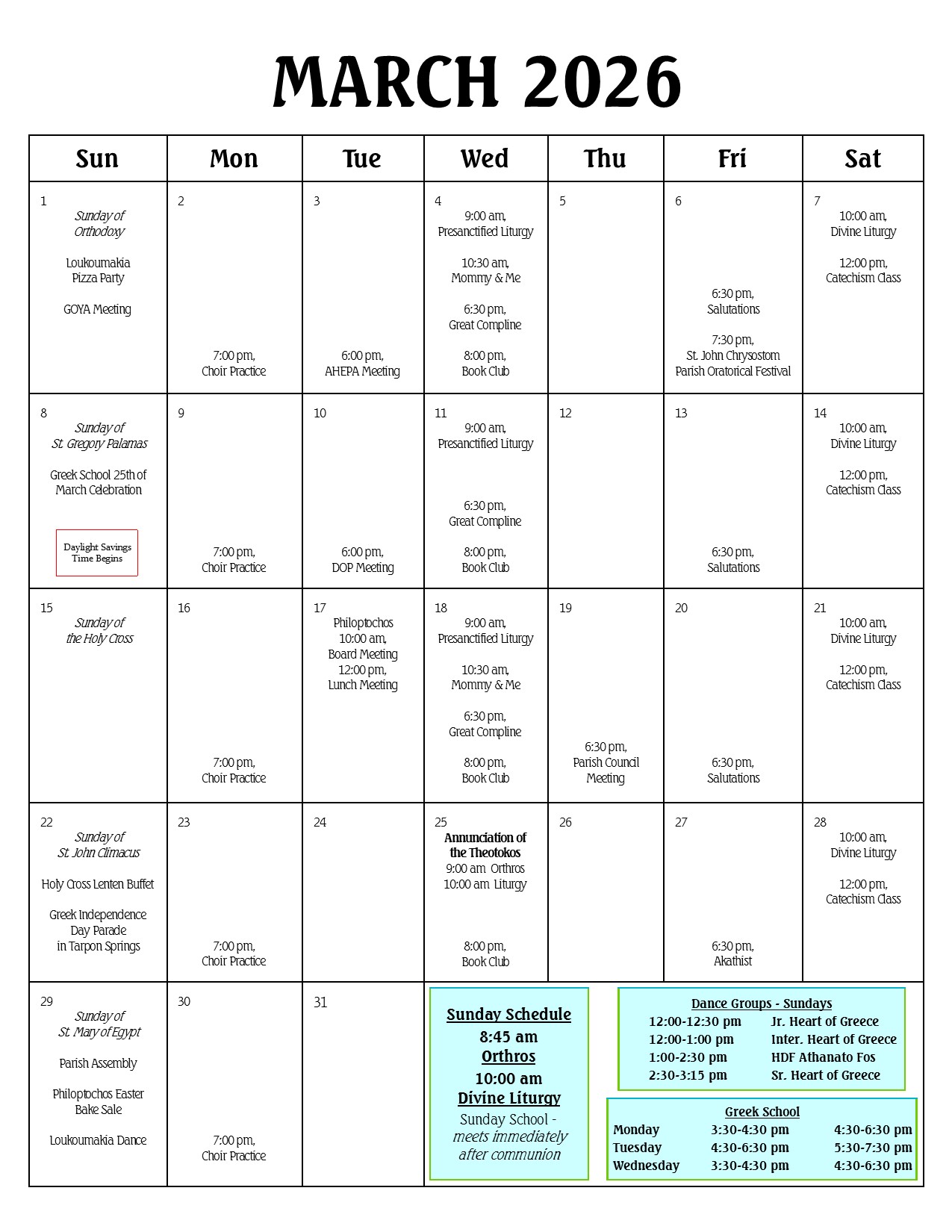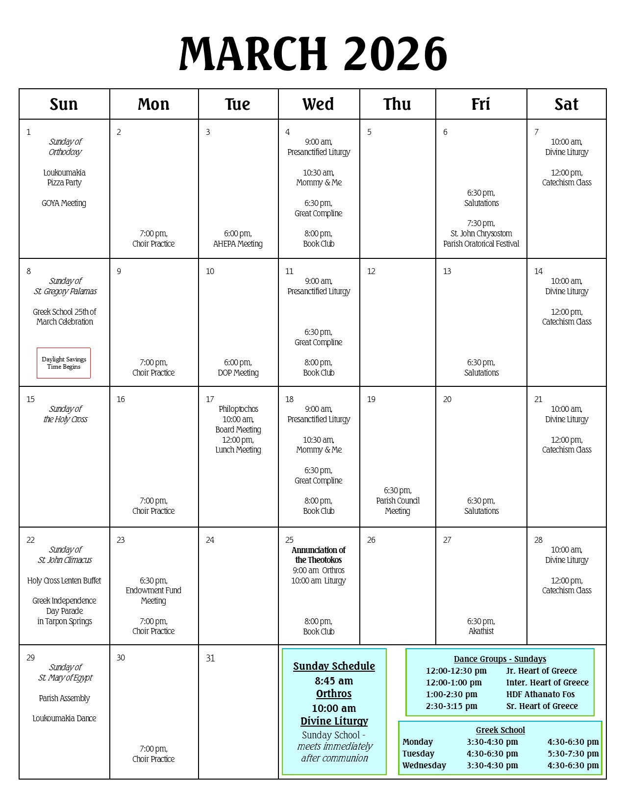 Parish Calendar